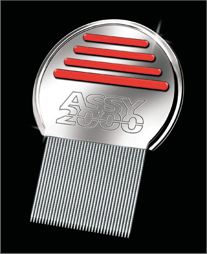– stal nierdzewna – której wykorzystanie przy laserowej technice produkcji sprawia, że grzebień ASSY 2000 jest wytrzymały i trwały, może mieć kontakt ze środkami chemicznymi używanymi do leczenia wszawicy