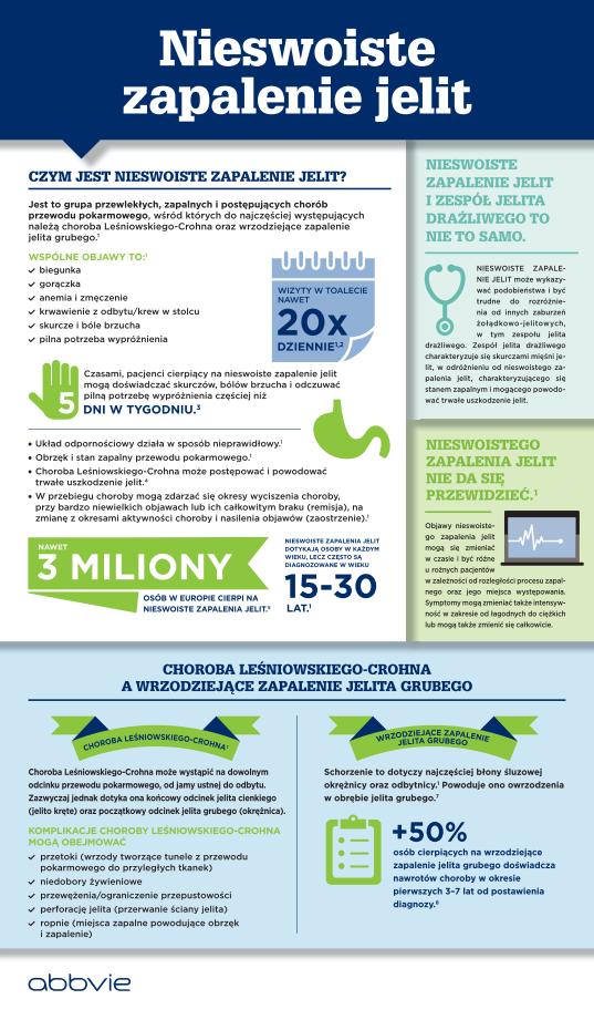 i informatory o nieswoistych zapaleniach jelita (chorobie Leśniowskiego-Crohna, wrzodziejącym zapaleniu jelita grubego i in.).