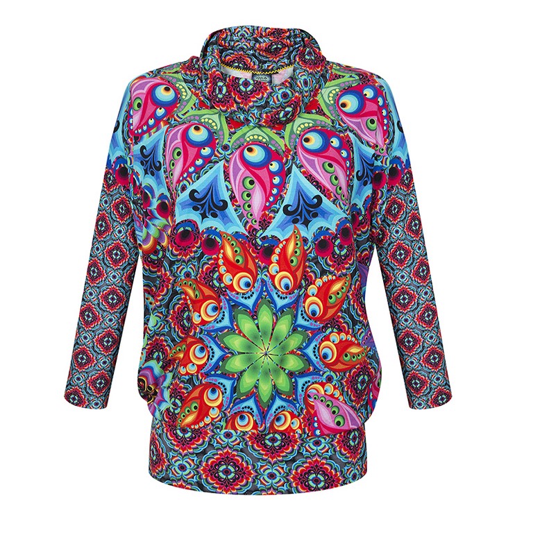 Choć mandale przedstawiane na ubraniach są trwałe i nie ma potrzeby niszczenia ich, to inspiracje z buddyjskiego symbolu są ogromne. Po pierwsze, kolor. Tradycyjne mandale są tworzone z dużej liczby barw, ponieważ każdy kolor umiejscowionyw obszarze mandali, ma swoje znaczenie i jest odpowiednio interpretowany. Vippi wykorzystuje w swoich projektach głównie żywe barwy, które pozytywnie nastrajają użytkowniczki tej marki. O wpływie koloru na człowieka oraz na jego samopoczucie mówią psycholodzy, opierając się na badaniach, zatem warto zwrócić uwagę na to, w jakie barwy ubieramy się i jak na nas działają.