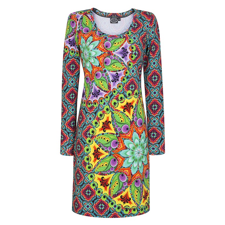 Mandala jako element sztuki buddyjskiej pełni funkcję medytacyjną, polegającą na tworzeniu a następnie niszczeniu obrazu. Oznacza harmonię i nieskończoność, dlatego wykorzystanie motywu mandali w modzie ma osobliwy charakter. Marka Vippi Design odkryła moc koloru, jaką mogą dać ubrania. W swojej ostatniej kolekcji zaprezentowała tradycyjny motyw buddyjski na wiele różnych (kolorowych) sposobów.
