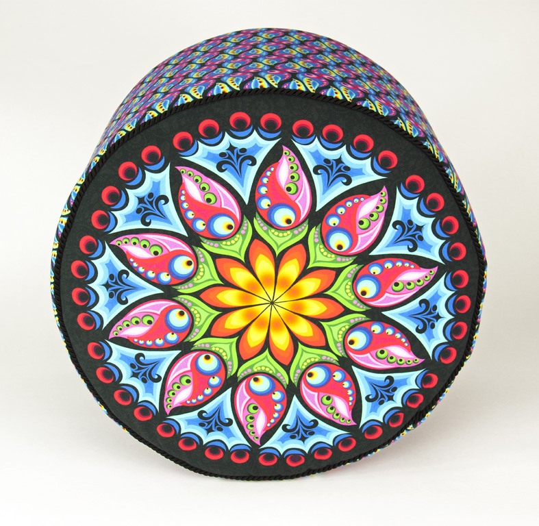 Charakterystyczne dla mandali motywy koła złożonego z mniejszych elementów, daje możliwość tworzenia atrakcyjnych, nieskończenie barwnych wzorów na tkaninach. Takie właśnie grafiki znajdziemy w kolekcji Mandale marki Vippi Design. Ale ta kolekcja to nie tylko ubrania, lecz także akcesoria meblowe, takie jak pufy i poduszki z charakterystycznym motywem. Wszystkie wzory można obejrzeć na stronie internetowej marki: www.vippidesign.com.